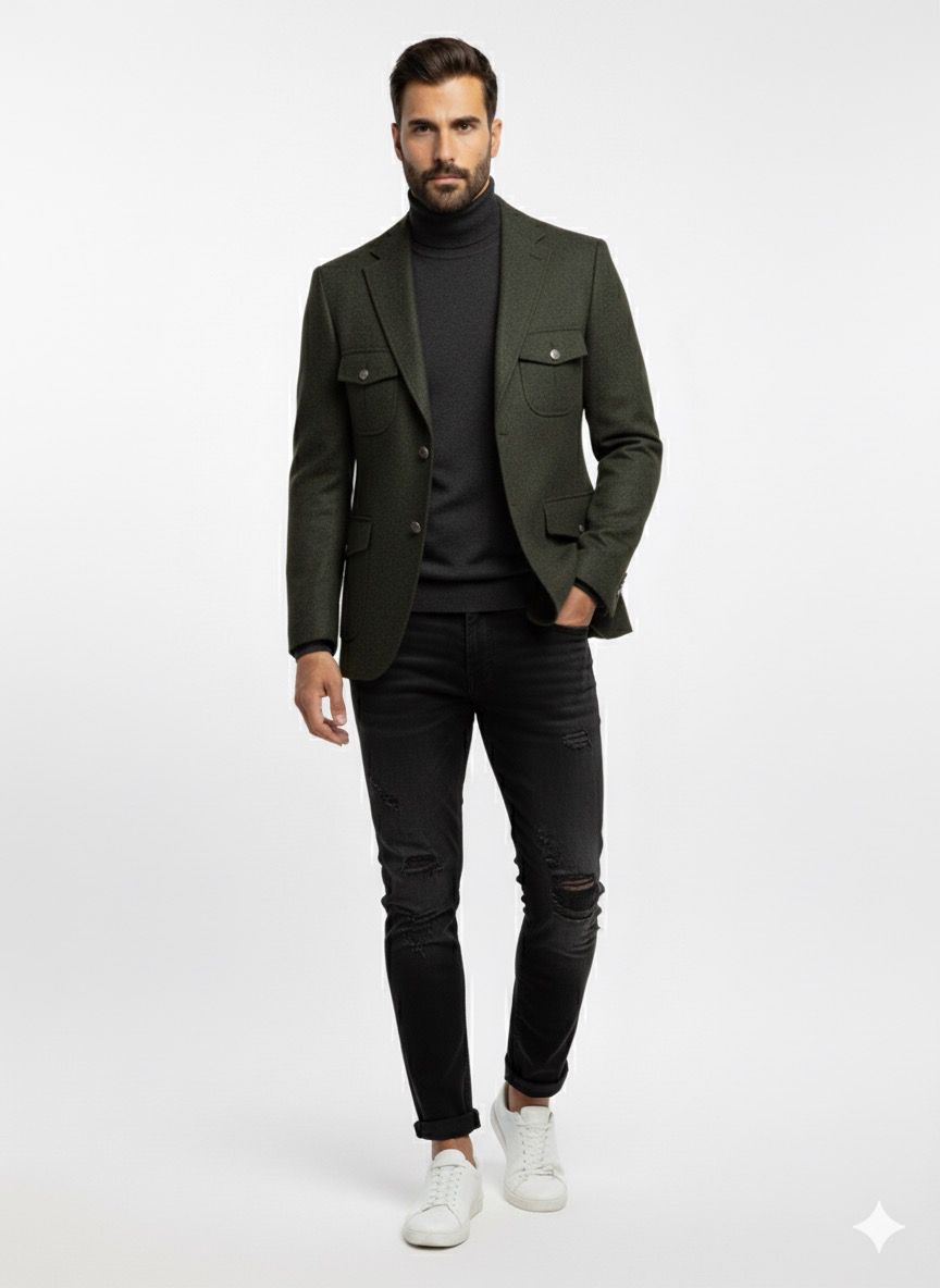 Nuestra blazer London ofrece una alternativa moderna a la moda inglesa. Corte entallado con tejido de lana fría, esta blazer ofrece un look de última moda con una solapa con botón rematado con un bolsillo. Hecho con tejido de primera calidad por la marca española, esta chaqueta es perfecta para aquellos que buscan estilo y comodidad. Casual y elegante